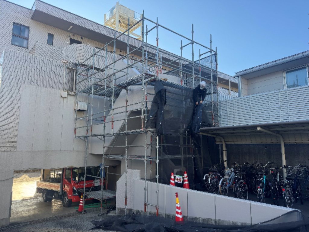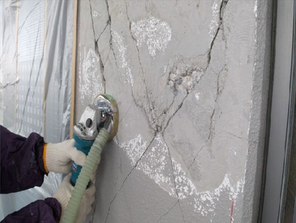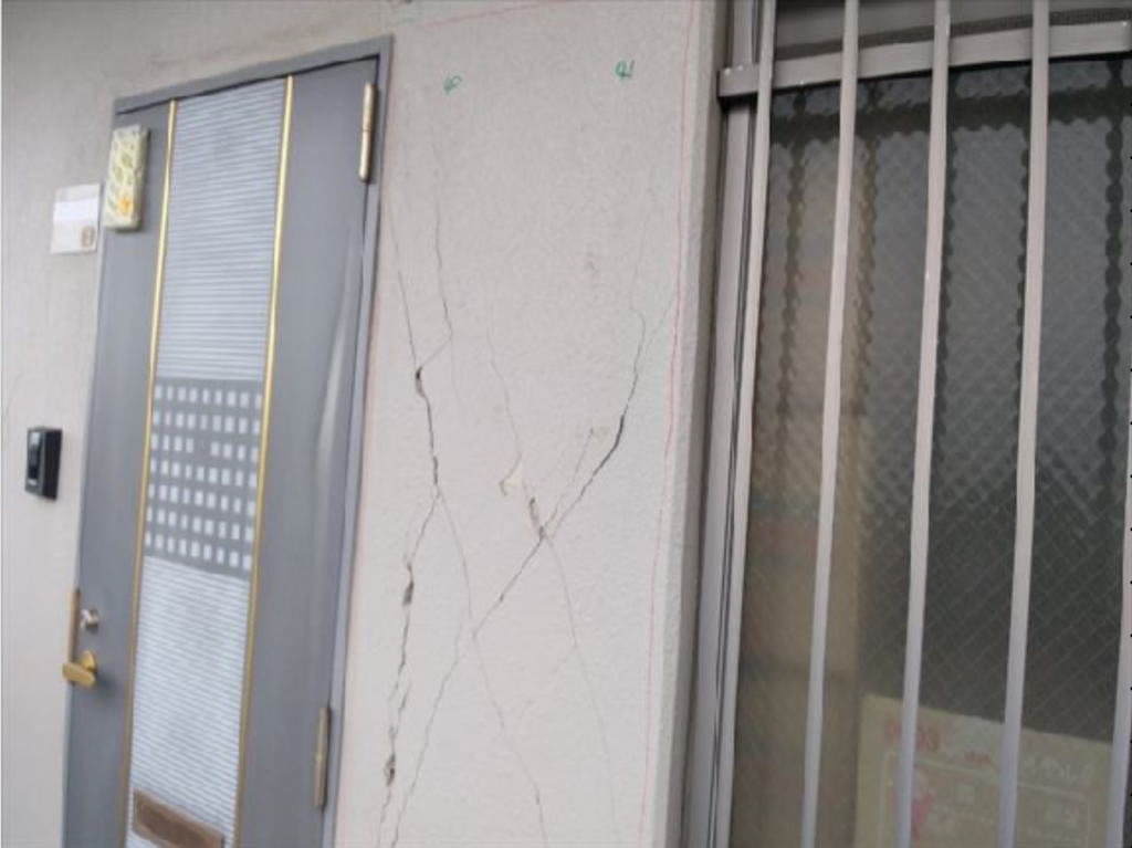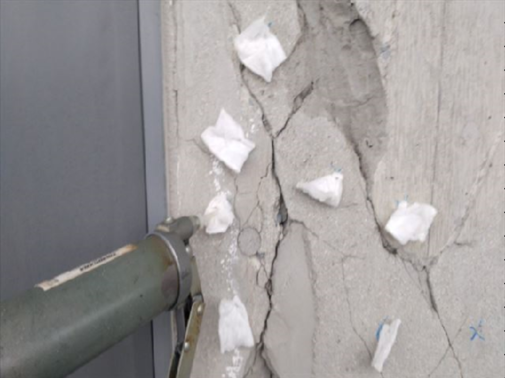 弊社では、このようなせん断クラック補修の他耐震補強工事(炭素繊維シート貼り)、外壁タイル剥落防止工事も行っております。