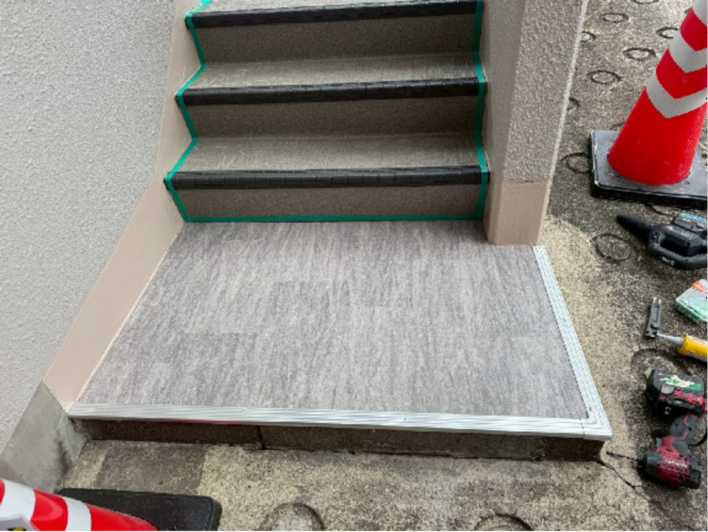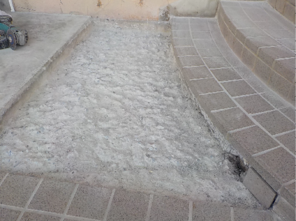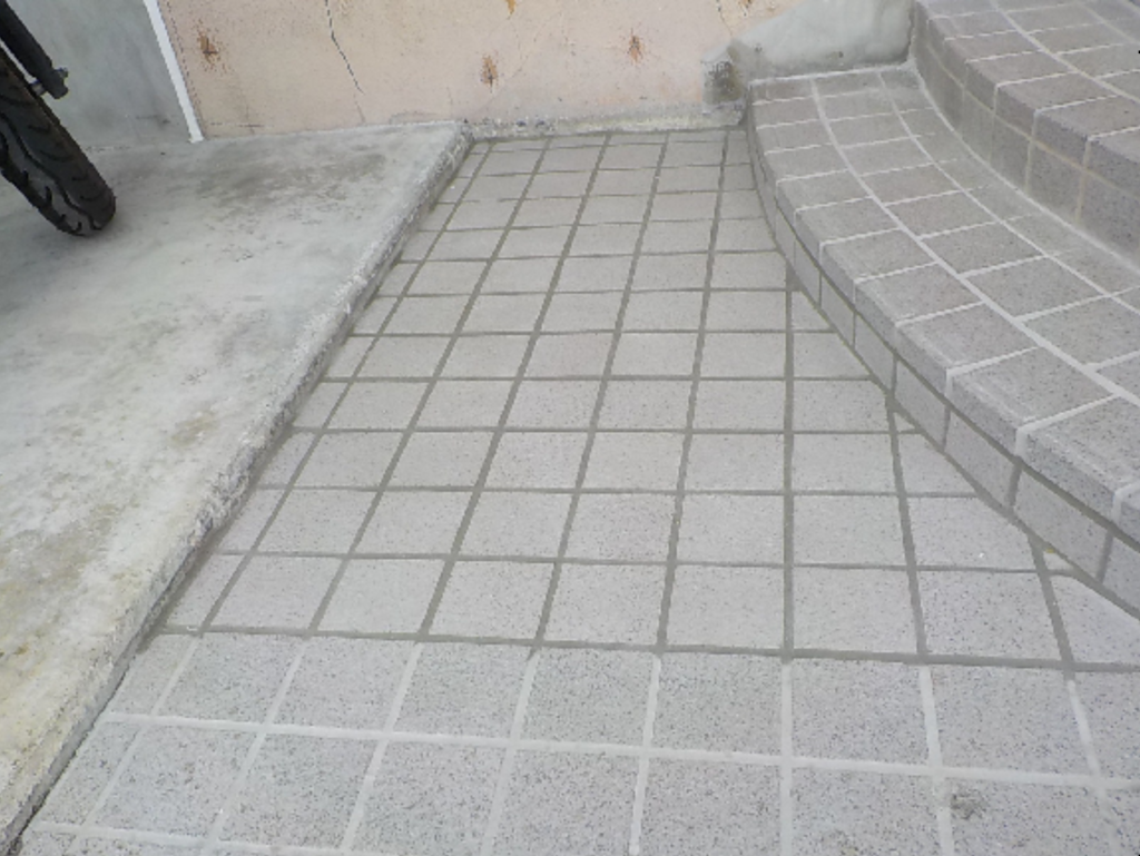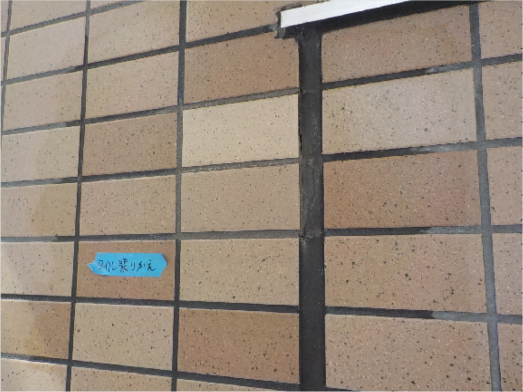 浮き、欠け、欠損しているタイルを撤去、下地調整、新規タイル張りの順で施工していきます。既存タイルに似たようなものを厳選し美観を損なわないよう施工いたします。